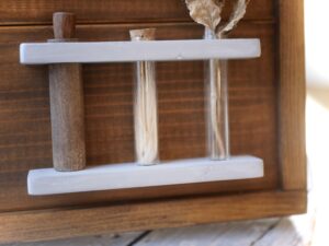1番右の試験管は、生花やドライフラワーなどを入れて、季節や気分によって変えてあげれるような仕様にしました。