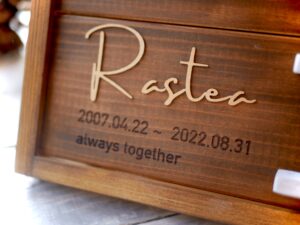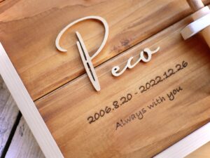 お骨入れは、家に来たお客さんから見るとリアルかな?と思い、木でお骨入れを作りました。