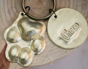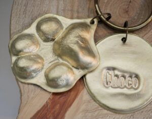 最初は、もう1匹のワンちゃんと一個ずつだったのですが、もう1匹のワンちゃんは型取り断固拒否だったみたいで、急遽チョコちゃんの左右の足形になりました^^