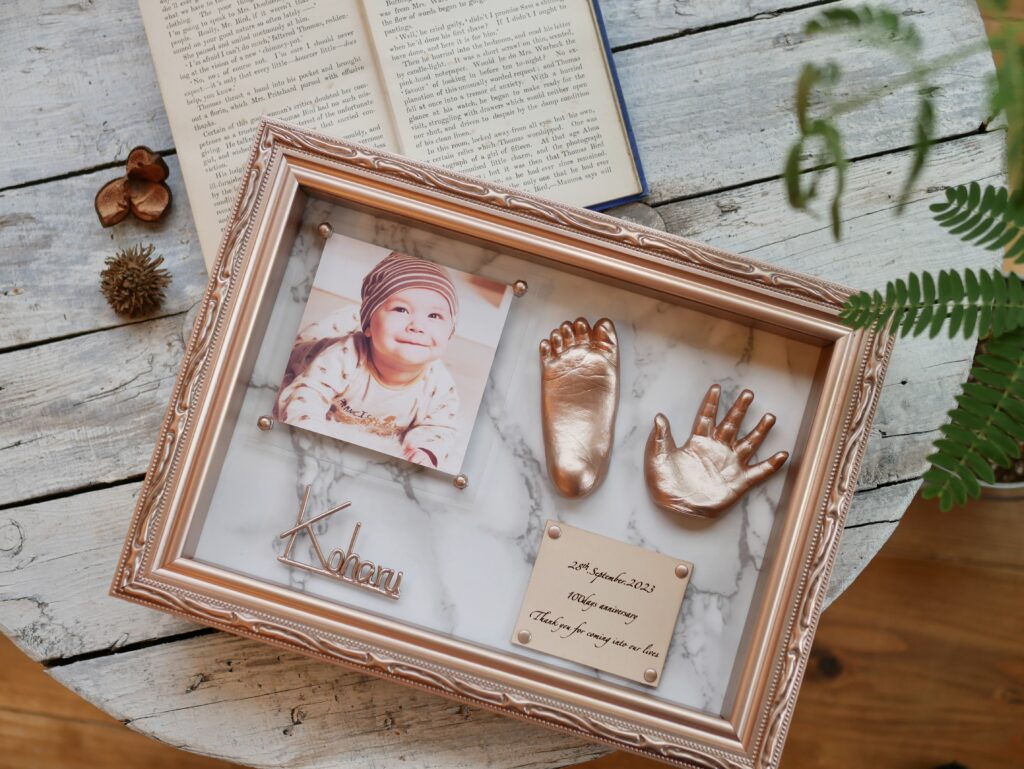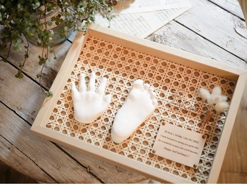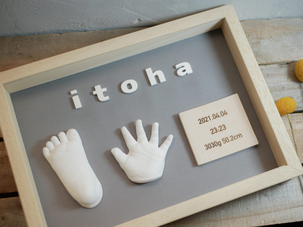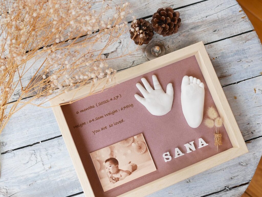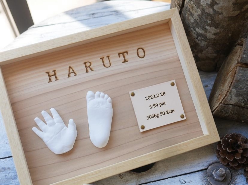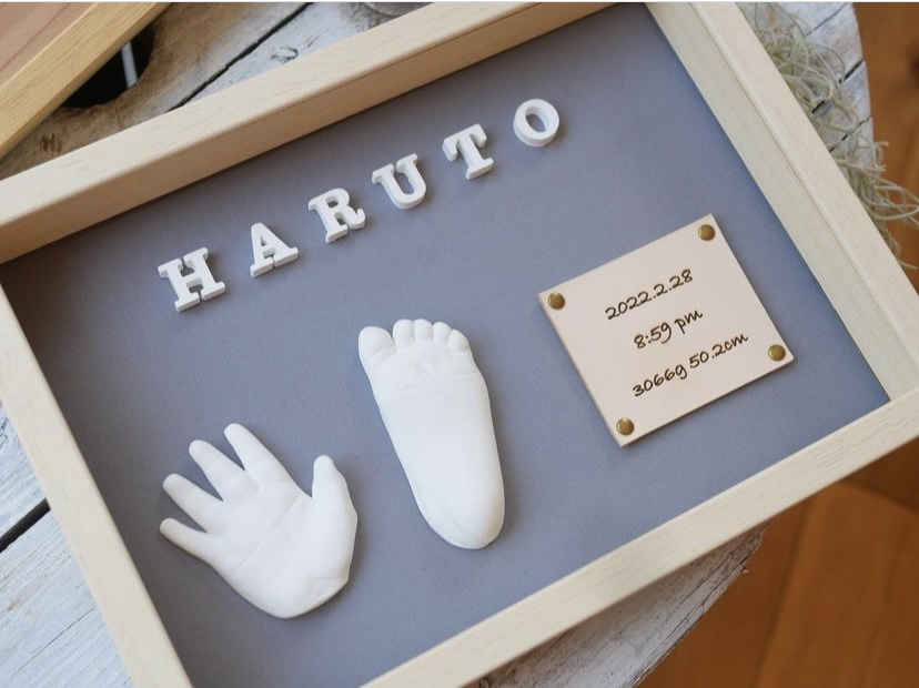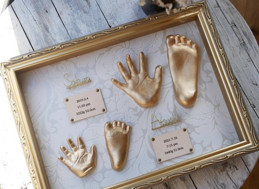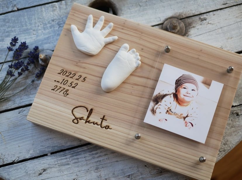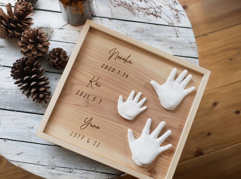 当店では、定番商品をベースにオーダーメイドでお子様の手形足形アートやペットの足形アートにも力を入れています。