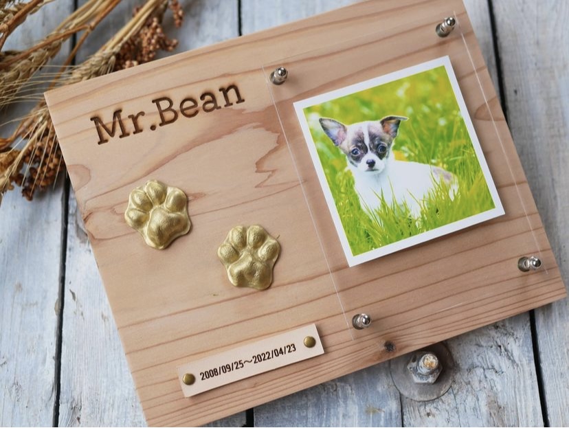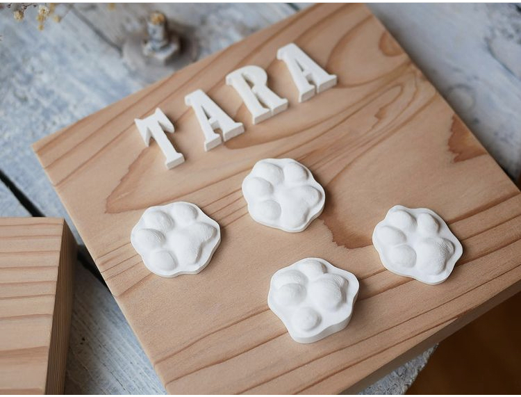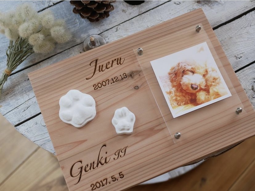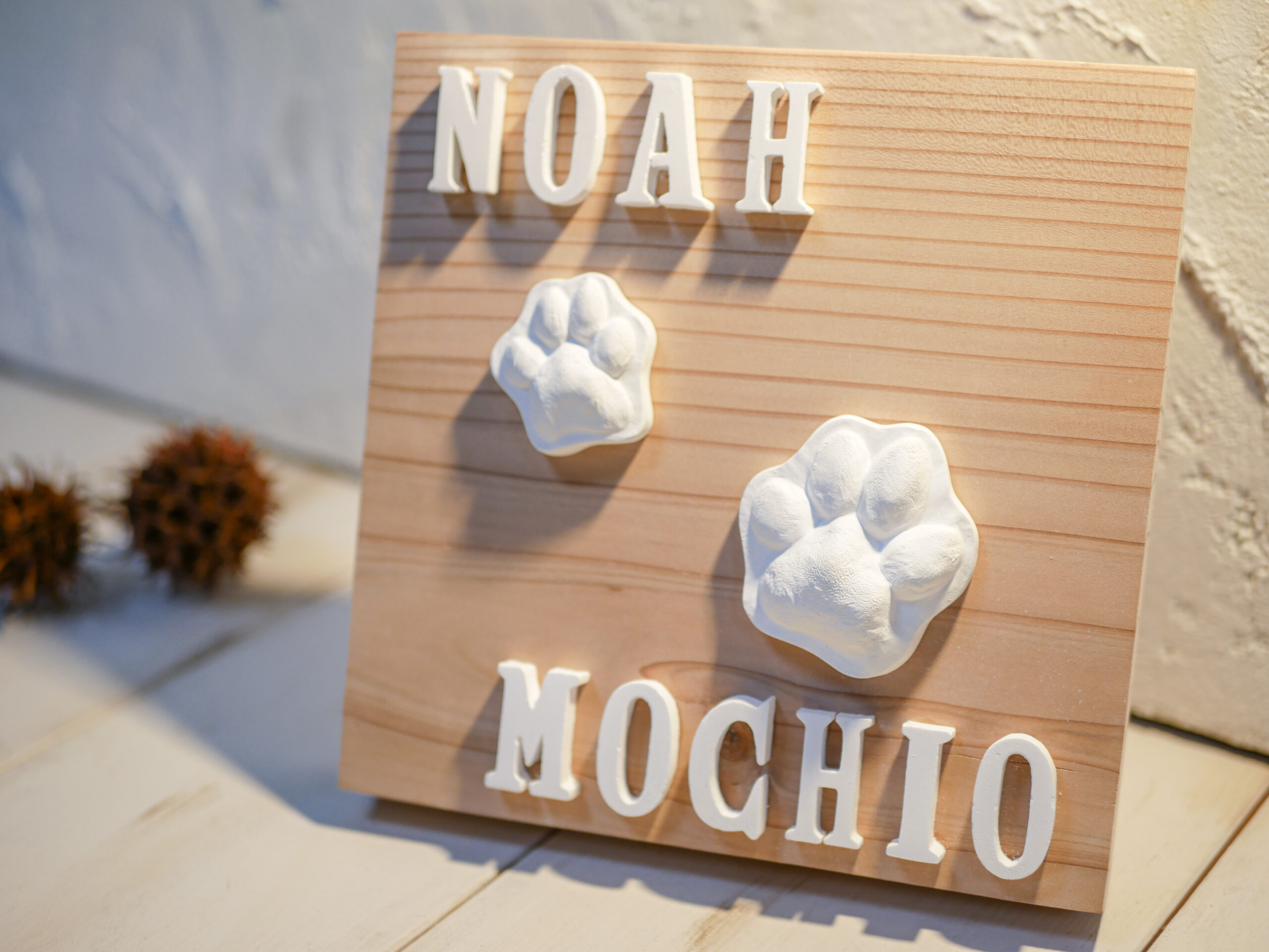 当店では、定番商品をベースにオーダーメイドでお子様の手形足形アートやペットの足形アートにも力を入れています。